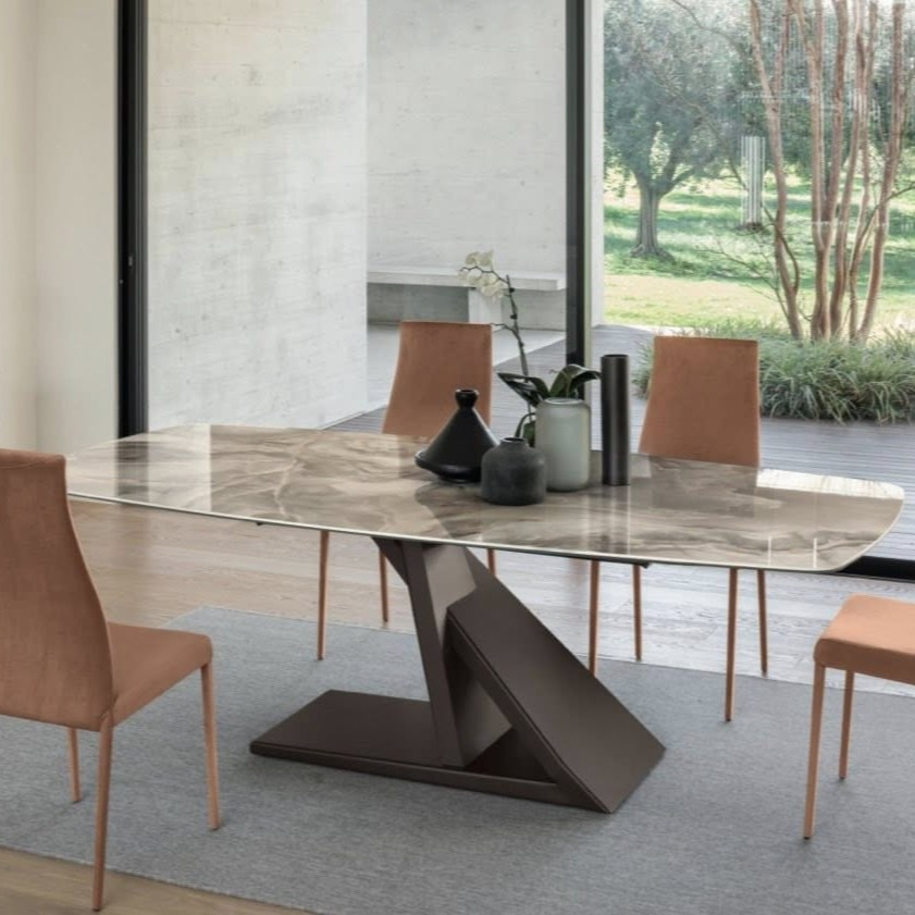Стол Zodiac, с его узнаваемой динамичной геометрией, сочетает в себе силу и лёгкость.