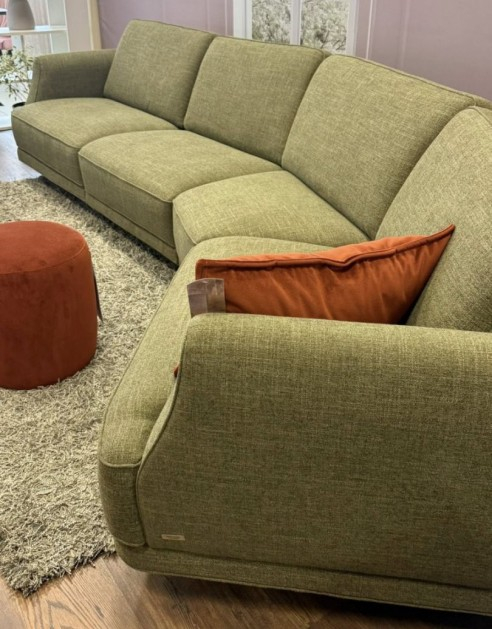 Диван Carter воплощает концепцию «домашнего укрытия» с лаконичными линиями, изогнутыми и наклонными подлокотниками, а также конструкцией, плавно переходящей к прочному основанию, напоминающему ракушку.