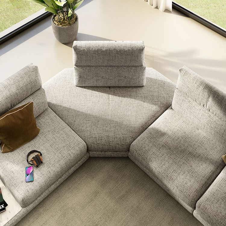 Вы можете собрать его в большой угловой диван или расставить модули по своему вкусу.
