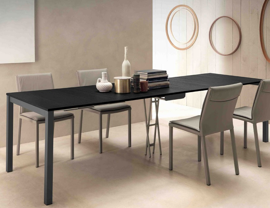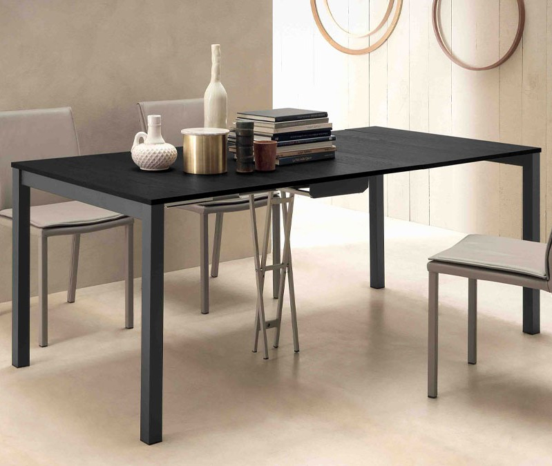 Оснащена центральными опорными ножками, которые поддерживают и обеспечивают максимальное выдвижение столешницы.