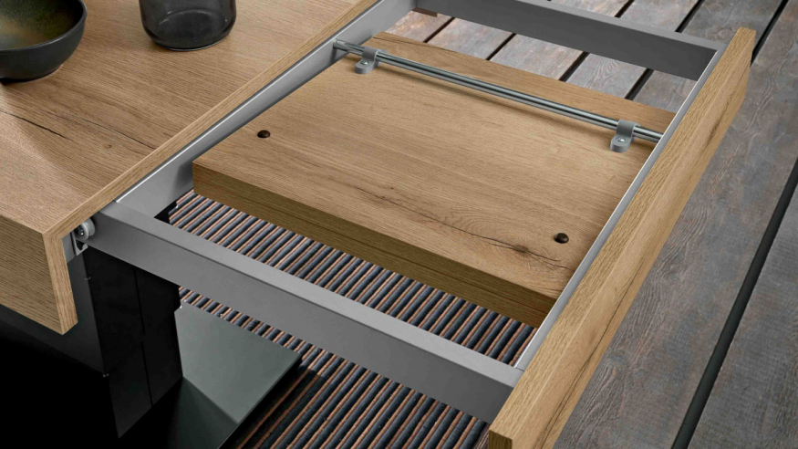 Доступные материалы столешниц: меламин, массив дерева, натуральный шпон, лак с открытыми порами, имитация строительного раствора.