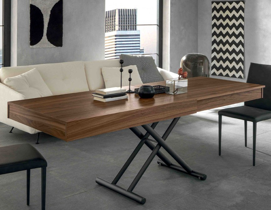 Механизм легко превращает его из журнального стола в полноценный обеденный стол.
