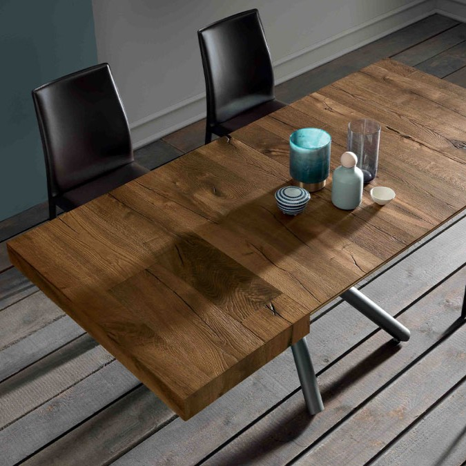 Имеет металлическую основу и газопоршневой подъемный механизм. Его можно регулировать по высоте с точностью до миллиметра от 36 см до 75 см. Стол очень легко раздвигается, имея очень хорошо замаскированный механизм синхронного открывания, который не виден ни в каком положении стола. Его можно удлинить с помощью одного или двух удлинителей по 50 см каждый