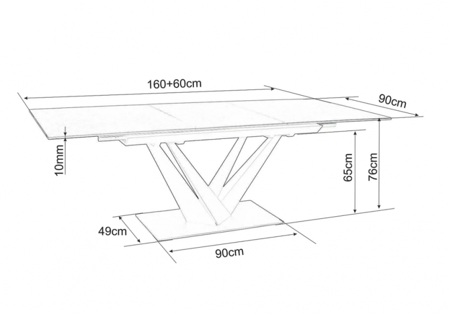 современный вид и делают его универсальным в использовании. Благодаря своим размерам (160 (220) х 90 х 76 см) этот стол легко поместится в вашей столовой.