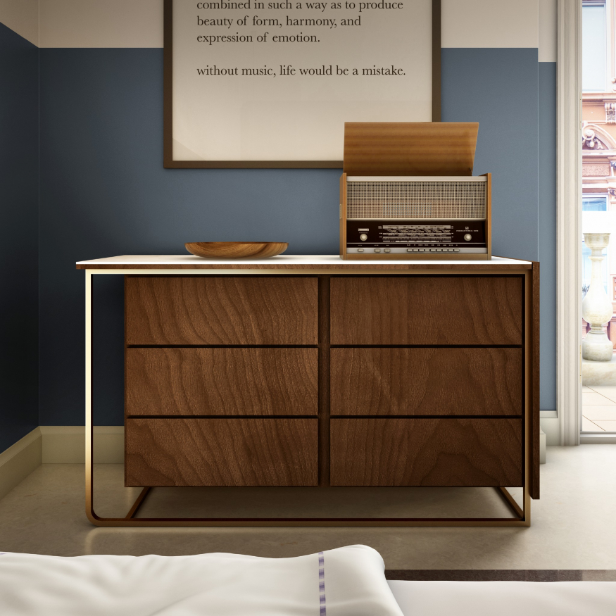 Комод с ящиками COMO воплощение лаконичной гармонии. Простые формы окутаны эффектными отделками и современными материалами, создавая идеальное сочетание функциональности и эстетики. Выдвижные ящики оснащены открыванием «push-open».