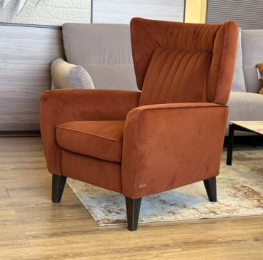 DETALII: Fotoliul ERICA este echipat cu o înclinare mecanică: picioarele din lemn sunt disponibile în două versiuni: wenge nuc.