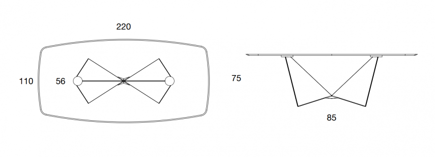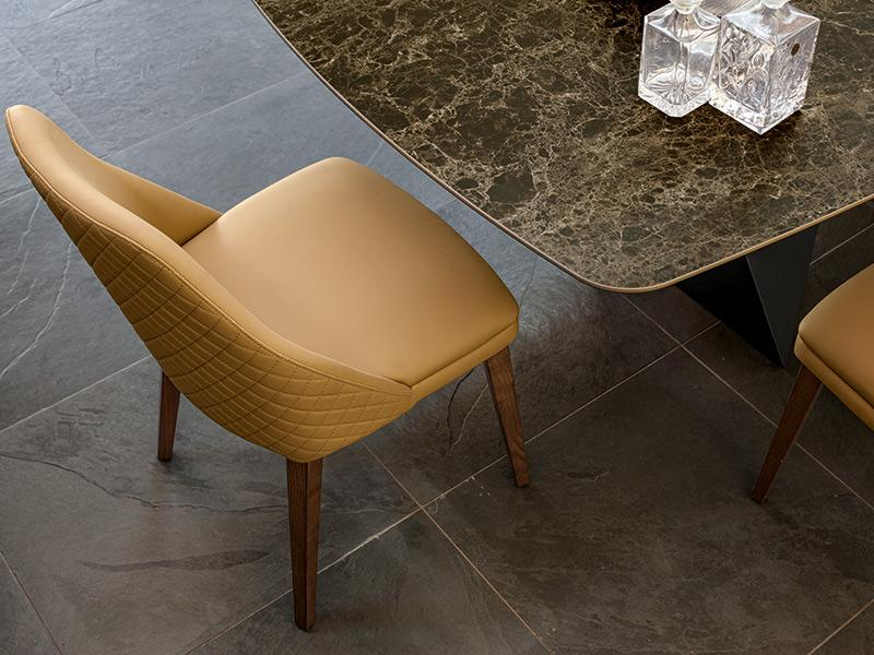Masa Origami surprinde cu formele sale neașteptate: blatul ceramic Emperador cu finisaj mat sau sticlă Extra Clear,