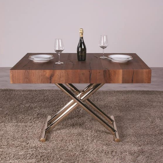 Structura metalica cu picioarele încrucișate originale are un lift pe gaz si roti invizibile pentru a muta masa. Masa este reglabila in inaltime de la 28 la 88 cm.