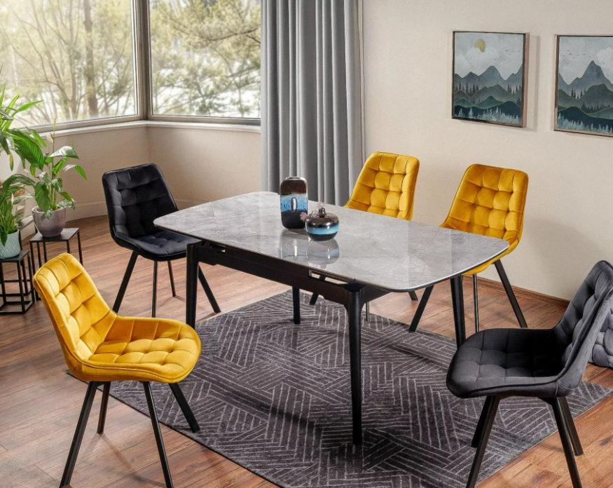 Forma dreptunghiulară se caracterizează prin versatilitate și practicabilitate. Masa de dining dreptunghiulară arată elegant și are o capacitate mare.