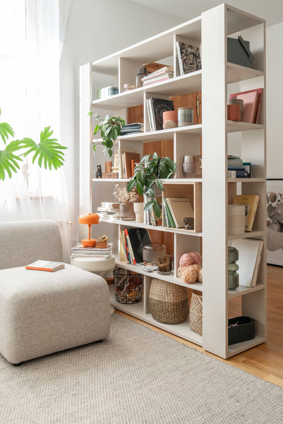 Raft-ul este finisat pe toate laturile, astfel încât poate fi plasat oriunde și folosit, de exemplu, ca despărțitor. Acces la conținut din 4 părți. Raftul poate fi completat cu lădițe din colectia 4You.