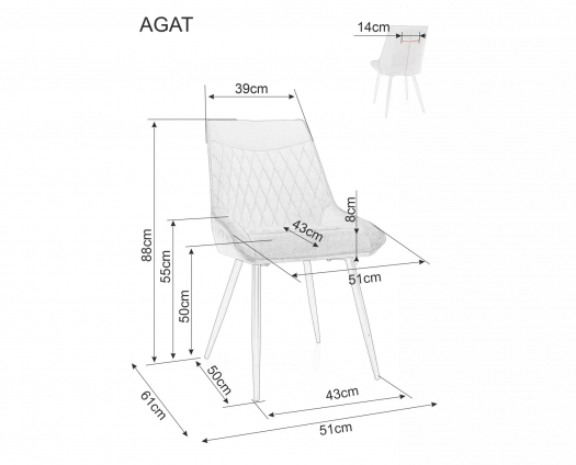 Scaunul Agat Velvet va fi o completare excelentă pentru bucătărie sau sufragerie. Are un cadru metalic durabil care oferă suport puternic și durabilitate. Scaunul este echipat cu tapițerie confortabilă din țesătură de înaltă calitate, care este plăcută la atingere și ușor de curățat.