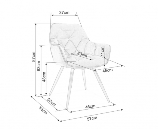 Tapițeria scaunului este realizată din velur rezistent la uzură, plăcut tactil, pe care se află o șapă „capitone” - nasturi încastrați în tapițerie.