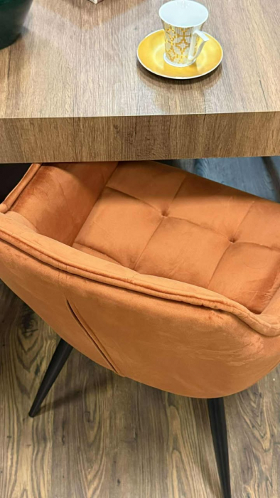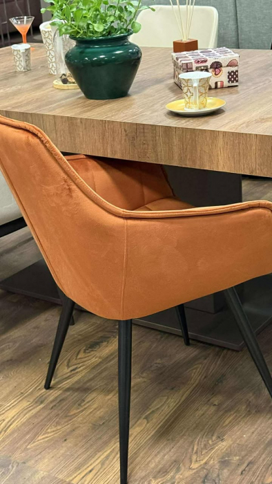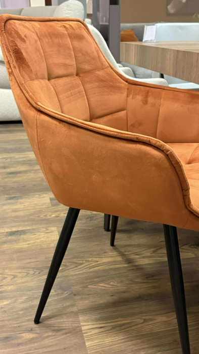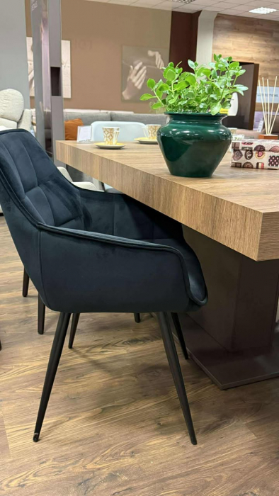 Scaun Lilia Velvet - finisat cu o tesatura extrem de placuta la atingere. Scaunul matlasat si confortabil cu cotiere spatioase creeaza un intreg extrem de eficient si impresionant.